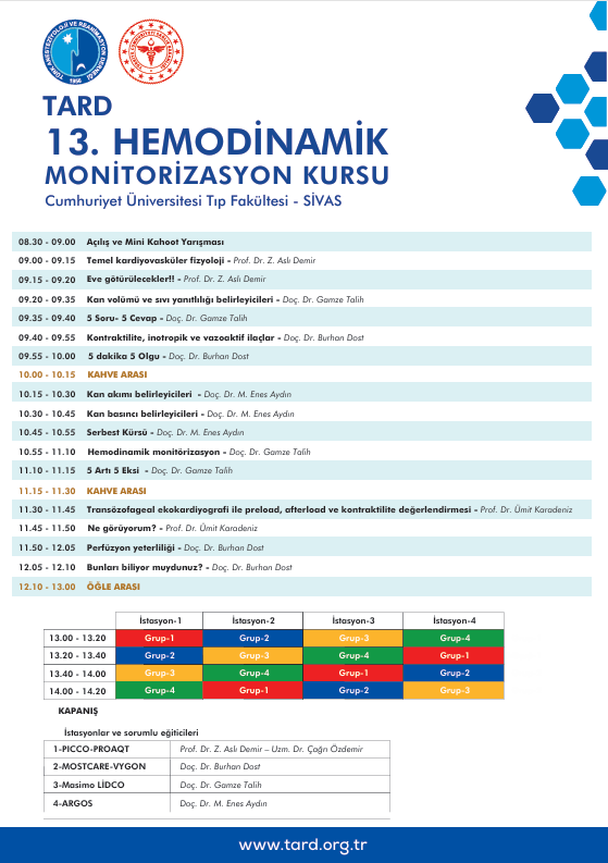 Anesteziyoloji ve Reanimasyon Ana Bilim Dalı Başkanlığı tarafından 11 Nisan 2026 (Cumartesi) günü TARD "13.Hemodinamik Monitorizasyon Kursu" adlı bilimsel toplantı düzenlenecektir.