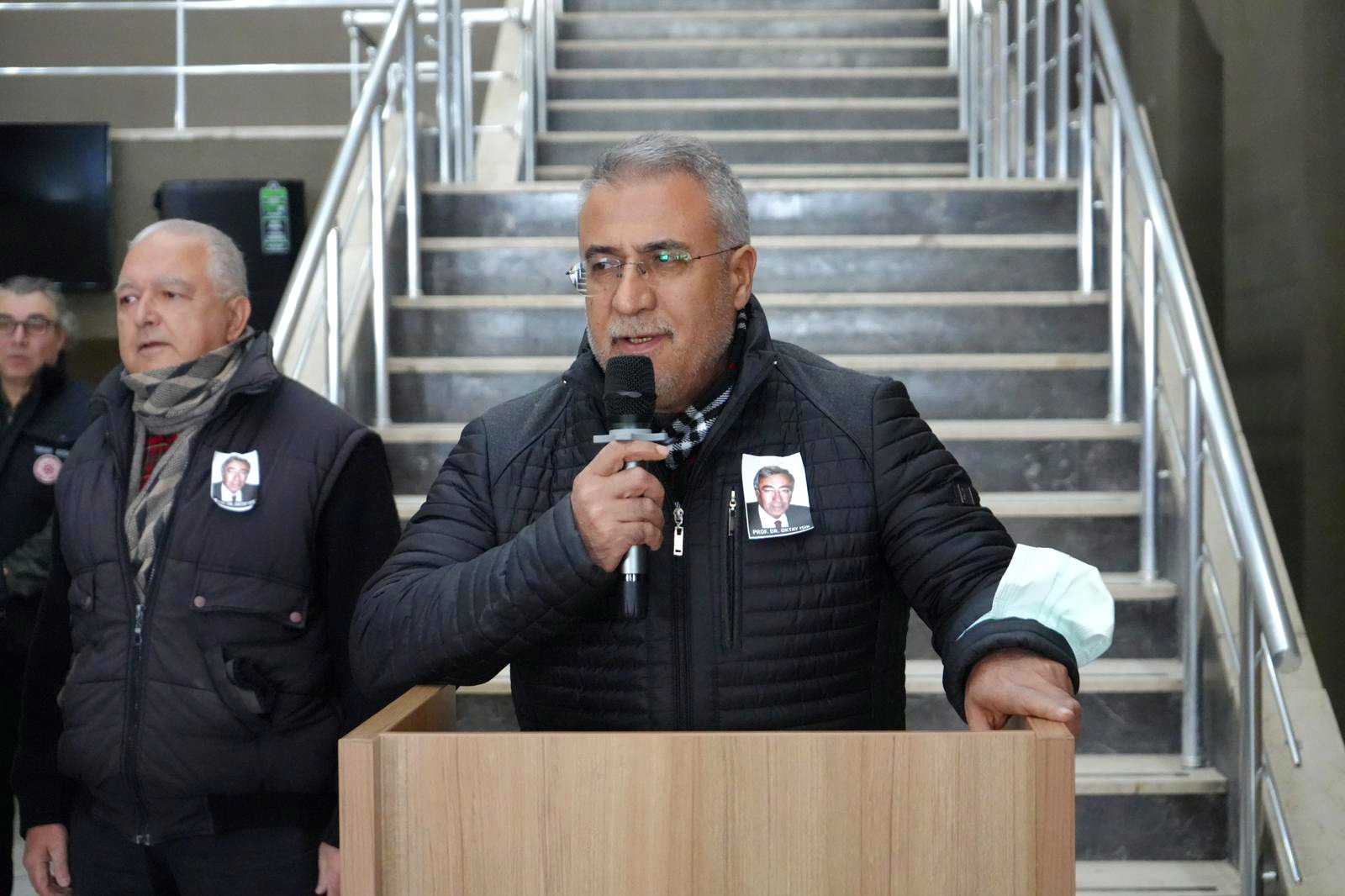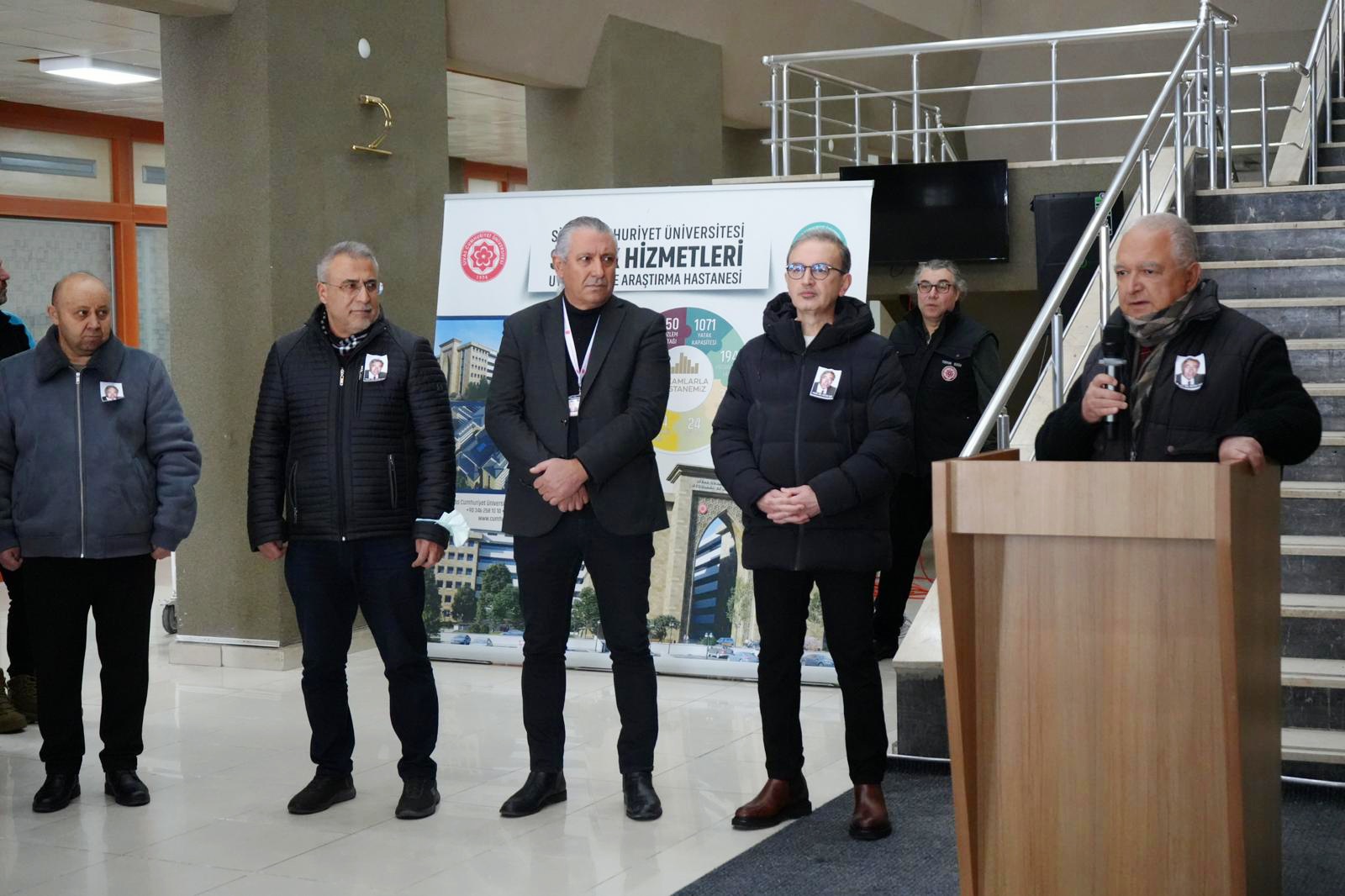 Üniversitemiz Hastanesi Başhekimliği önünde gerçekleştirilen törene; Rektör Yardımcımız Prof. Dr. Hayati Öztürk, Hastanemiz Başhekimi Prof. Dr. Ömer Tamer Doğan, başhekim yardımcıları, İdari yönetici yardımcıları, akademik ve idari personelimizin yanı sıra merhum hocamızın ailesi, yakınları ve sevenleri katıldı.